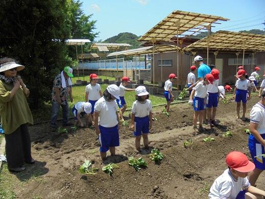 2年生がサツマイモの苗を植えました。プールの北側にある学校園です。どろんこになった児童もおり、服や靴下を洗う児童もでてきました・・・。一生懸命植えました、収穫を楽しみにみんなでお世話をしていきます。ご指導ありがとうございました。