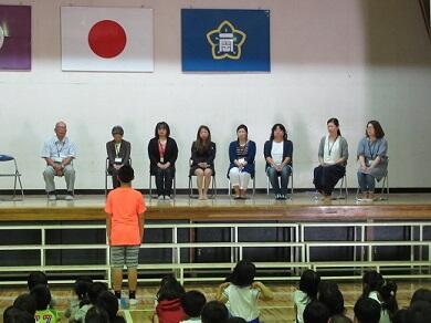 あいさつがすばらしいことなど、1学期にがんばったことのお話や明日からの夏休みで守ってほしいことを話しました。