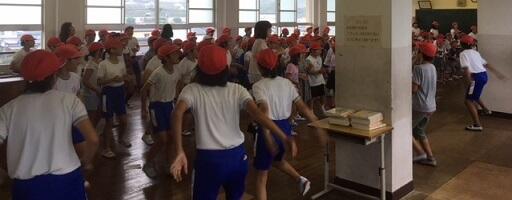 そして、全校ダンス「ばんば踊り」の練習を入場から行いました。