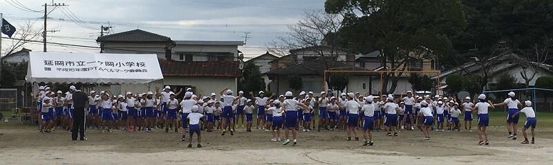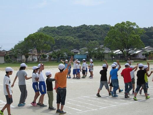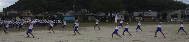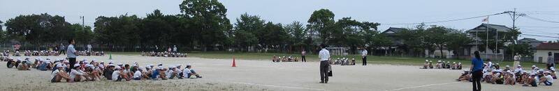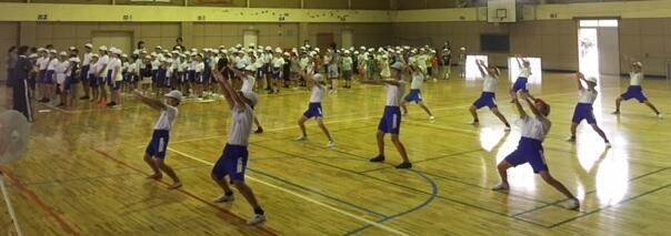 さて、今日から全校で合同体育が始まりました。時間は少しでも涼しい時間帯のいちおかタイムから1校時にかけて実施しています。
