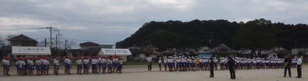 雨が上がっていたので、一旦は運動場に出て、最後の合同練習を始めました。
