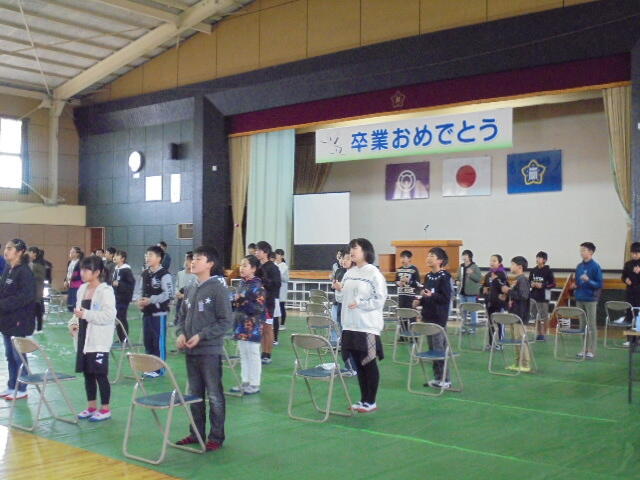 規模を縮小し、6年生、保護者の皆様、職員の出席による卒業式を行い