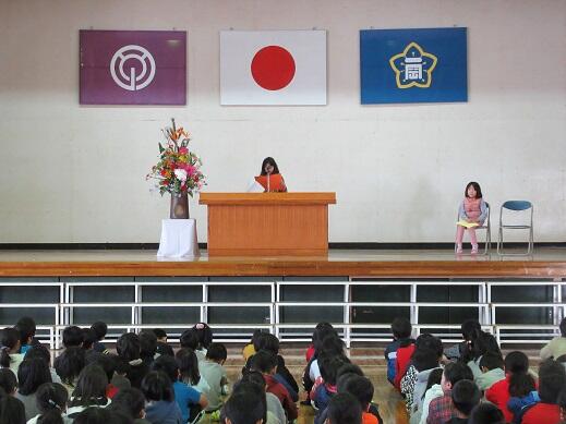 2年生と4年生が発表してくれました。二人とも新学期にふさわしい、やる気に満ちた内容の立派な発表でした。