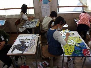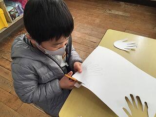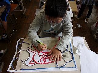 下書きを大きく描かないと、カッターで切るのがとても大変になります。子どもたちは、花や水中の生き物、動物などに挑戦しました。