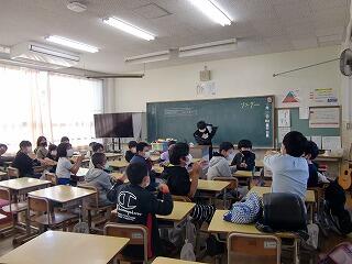 若手教師による寸劇もあり、児童は楽しみながら集中して話を聞くことが