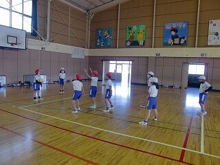 この日の室内遊びクラブは、ボール回しゲームをしていました。