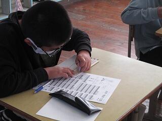 12月13日(月)に、避難訓練(地震・津波)を行いました。地震の放送で机の下に隠れ、揺れがおさまった放送で運動場に避難し、人数を確認した上でファーツリーゴルフ場近くまで避難しました。