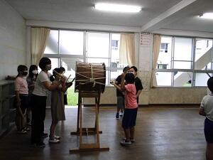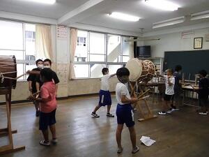 運動会で行うばんば踊りの太鼓の練習を15日の昼休みから始めました。