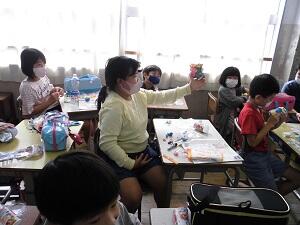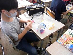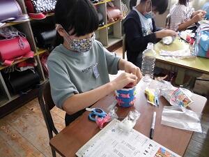 3年生が図工の学習でペン立てや貯金箱を作っていました。