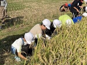 10月26日月曜日の5・6時間目に、JAや農家の方のご協力のもと、5年生が稲刈り体験をしました。初めての鎌にドキドキしていたのは初めだけ。ザクっという音とともにきれいに刈り取ることができると、