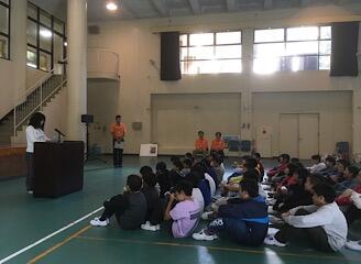 今年もまた全校朝会で保健委員会の児童の発表がありました。