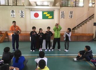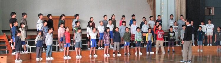 本日の全校朝会では、今週金曜日(9日)の延岡市小・中学校音楽祭に出場する4年生の発表がありました。