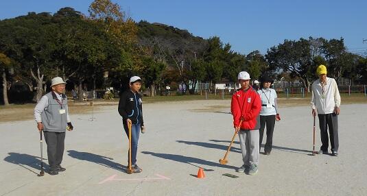 とてもよい天気に恵まれました。初めてグラウンドゴルフを経験する児童もたくさんいましたが、楽しくプレーできました。