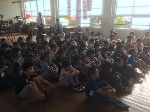 5月15日火曜日の全校朝会は、本校読み聞かせサークル「おひさまの声」の8名の方をお迎えして