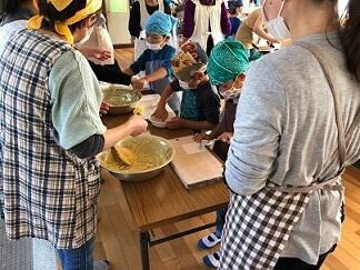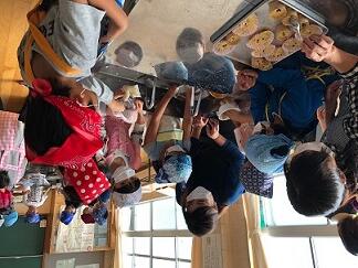 調理に当たっては、17名の保護者の皆様にご協力いただき、安全面に十分配慮していただきながら、楽しく調理することができ、できあがった「サツマイモの蒸しパン」と「おさつスティック」はとてもおいしかったようです。