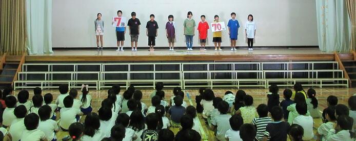 今年もまた全校朝会で保健委員会の児童の発表がありました。