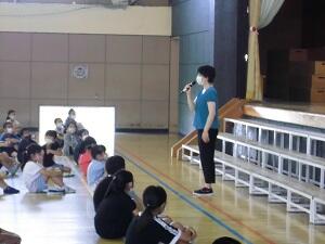 始業式では、2年生、3年生、5年生の3名の代表児童が2学期の目標などについて堂々と意見発表をしていました。その後、校長より2学期もコロナウイルスや熱中症に気を付けていくことや勉強や運動をがんばるために栄養と睡眠をよくとること、長い2学期、1ヶ月ごとにがんばることを決めて取り組むことについて話しました。
