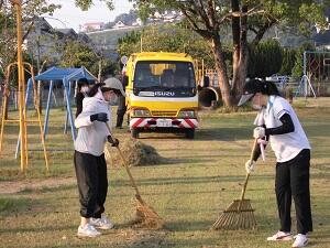 本年度のクリーン作戦は、コロナウイルス感染拡大防止の観点から密になることを避けるため、全体での活動は中止とさせていただきました。ただ、子どもたちが運動会をするのだから規模を縮小した形で協力したいと執行部の方々から申し出があり、22日(土)にゆうゆう会の皆様、23日(日)にPTA執行部とクリーン作戦担当の皆様に御協力いただき、運動場の除草作業を行いました。御協力いただいた皆様、暑い中、本当にありがとうございました。