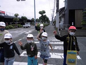 道路の横断の仕方を登校班ごとに練習しました。今日学習したことをこれからの生活に生かして、右左を確かめて安全に横断しましょう。決して飛び出すことのないようにしましょう!