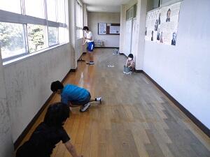 掃除では、縦割り清掃で、上学年の児童が下学年の児童にやさしく教えながら、無言掃除をしているところが多く見られました。