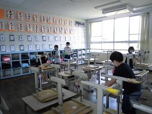 28日の給食準備と掃除の様子を紹介します。