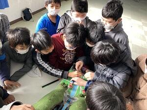 12月15日火曜日に、延岡土木事務所の方を講師にお招きし、5年生を対象に「土砂災害防止教室」を行いました。土砂災害の種類や様子を動画で見ました。崩れ落ちる山の斜面や押し流される土砂は想像以上の勢いで、「え・・・こわい。」と土砂災害の怖さを改めて感じていました。また、土石流の起こる仕組みなどを模型で教えていただきました。