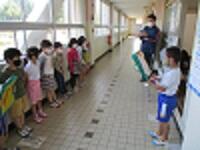 2年生が、1年生に学校内のいろいろな教室を次のような案内をしながら回りました。