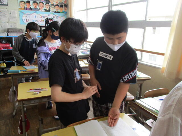 このゲームは、グループの友達にみんなで「How are you?」と聞きます。聞かれた子は、ジェスチャーだけで答え、そのジェスチャーを見て、友達がどういう気持ちなのかを当てるものです。元気な3年1組は、「I’m fine!」「I’m happy!」と答える子が多かったです。