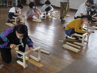 5月30日。6年生がものつくり体験教室を行いました。講師の先生方のお話を聞きながら、流木を使ったコンテナガーデンや椅子づくりにチャレンジしました。匠の技を実感すると共に、自分の手で作る喜びを感じていたようです。