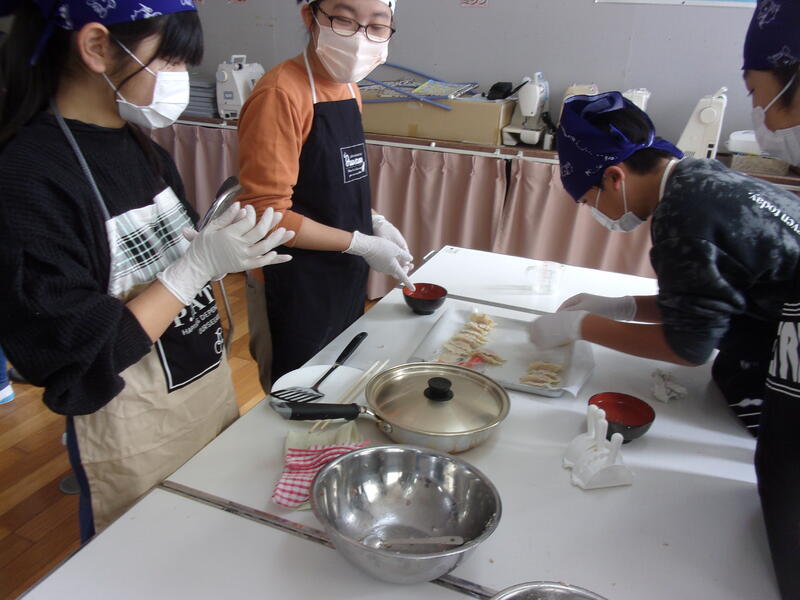 「ぎょうざ料理教室」では、みやざきブランドポークを使って、2種類の味(プレーン・チーズ)の餃子作りに挑戦しました。最後は、自分で作った餃子を美味しくいただきました。