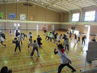 1月27日。んまつーポスのみなさんを迎えての3回目(最後)のコミュニケーション向上事業でした。4年生の子どもたちは、コンテンポラリーダンスの魅力を十分に感じながら、今回も楽しく活動しました。