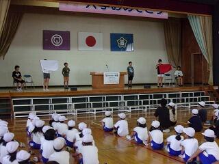 9月12日(火)に結団式を行いました。結団式では、団長や副団長、リーダー紹介や両団団長、副団長が運動会の抱負を発表しました。団の色も決まり、これから赤団白団に分かれて競い合う運動会ですが、全校一丸となって楽しく思い出に残る運動会になることを願っています。