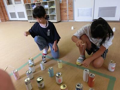 2年生が「おもちゃランド」という勉強で、手作りおもちゃを作ってみんなで楽しみました。