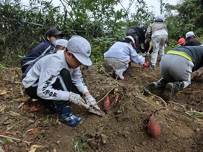 本日2、3校時に、2年生が芋掘りを行いました。芋のつるを切ったり、マルチをはぎ取ったりして、芋を掘っていきました。土からつるが出ているところをスコップでやさしく掘ると、大きな芋やいくつもつながった芋がとれました。予想外の大きな芋に、子ども達は大きな歓声を上げていました。一緒に芋掘りをしていただいた学校協力者の皆様、ありがとうございました。