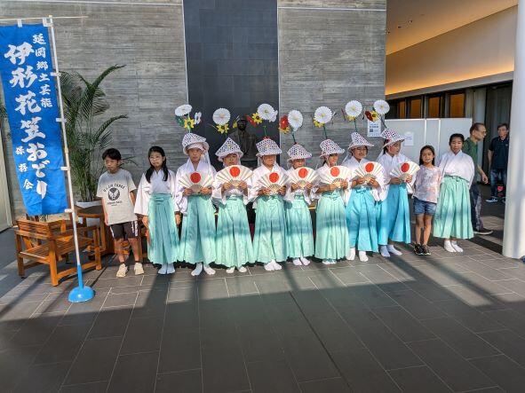 8月20日(日)に第33回延岡市郷土芸能大会が野口遵記念館で行われました。14の団体が参加し、様々な郷土芸能を披露しました。本校からも複数の6年生が参加し、伊形花笠踊りを披露しました。一番最後のとりを務め、堂々とした素晴らしい踊りでした。今までの練習の成果がしっかりと発揮されて、感動しました。地元に受け継がれる伝統芸能の素晴らしさを感じるとともに、しっかりと引き継いでいく大切さを強く感じたところです。保存会の皆様には日頃からご指導いただき本当にありがとうございます。