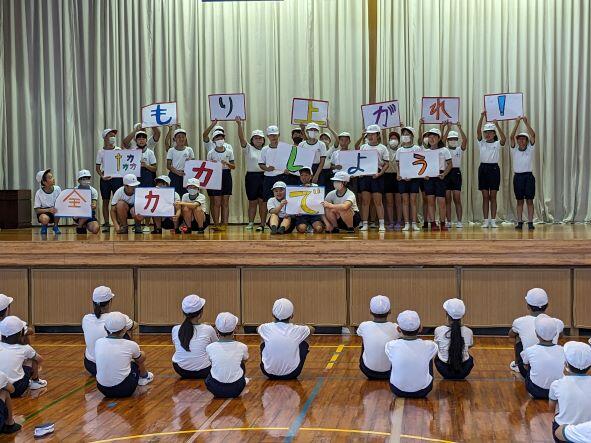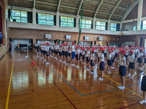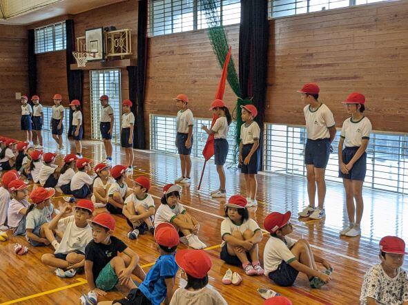 2学期の始業式が行われました。体育館には元気いっぱいの子どもたちが集い、はじめに児童2人の作文発表が行われました。2年生のちなつさんは、2学期は算数のかけ算九九と学校を一日も休まず、早寝、早起き、朝ご飯を目標に掲げ、楽しい学校にしていきたいと発表しました。5年生のゆいなさんは、1学期できなかった発表をがんばることと、運動会のリーダーに立候補し、自信を付けていきたいという目標を発表しました。私からは「幸動」について、甲子園優勝の慶應義塾高校の例をあげて、2学期も頑張っていくようにと話をしました。伊形っ子全員がしっかりと目標を持ち、長い2学期も頑張ってほしいと思います。