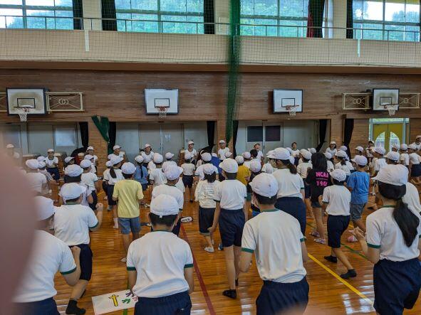 今日は初めての運動会全体練習が行われました。主に開会式、ラジオ体操、エール交換などの練習を行いました。雨により運動場が使えないのでなかなかイメージがつかめないと思いますが、みんな一生懸命に頑張っていました。