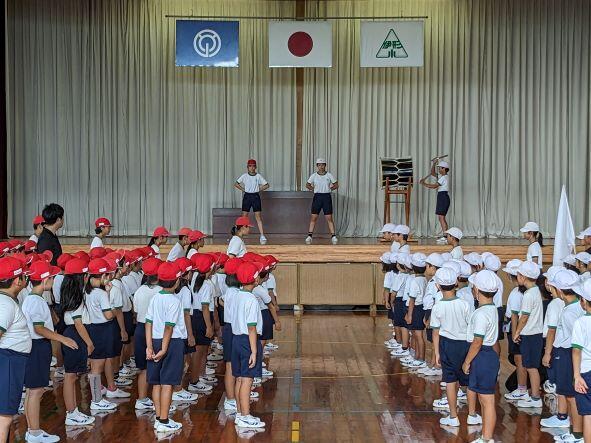 10月15日の運動会に向けて、みんながんばっています。雨の影響で運動場が使えないので、主にダンスの練習を体育館で行っています。暑い日が続きますが、みんな元気よく体を動かしていました。みんな上手でびっくりしました。