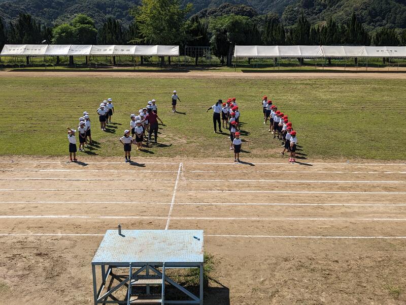 日曜日の運動会に向けて最終の練習を頑張っています。今日は校舎の3階から1年生のダンスの様子を見学しました。隊形もしっかりとしていて、ダンスも楽しみながら踊っていました。本校はグランドの水はけがとても悪いので、明日の雨が心配になります。たくさん降らないことを願うばかりです。