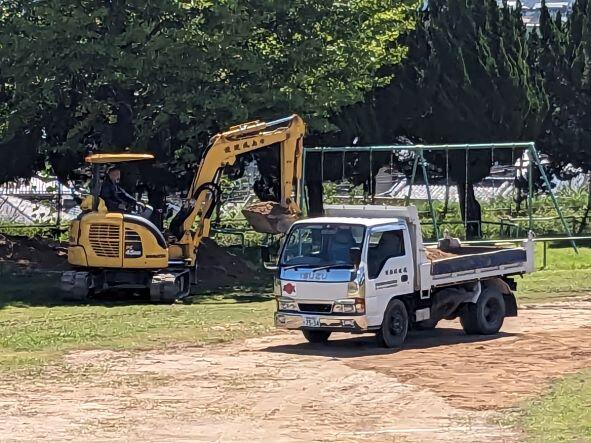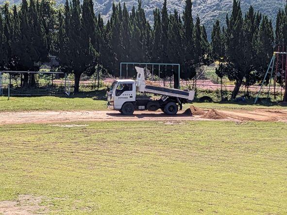 今日も中原さんの協力で、重機を使って運動場の整備を行っていただいています。暑い中ですが本当にありがとうございます。感謝!