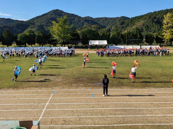 素晴らしい秋空の元、秋季大運動会が行われました。前日少し雨が降りましたが、雲一つない晴天に恵まれ、今回は観覧者に制限はなく、保護者や地域の方々もたくさん来られました。