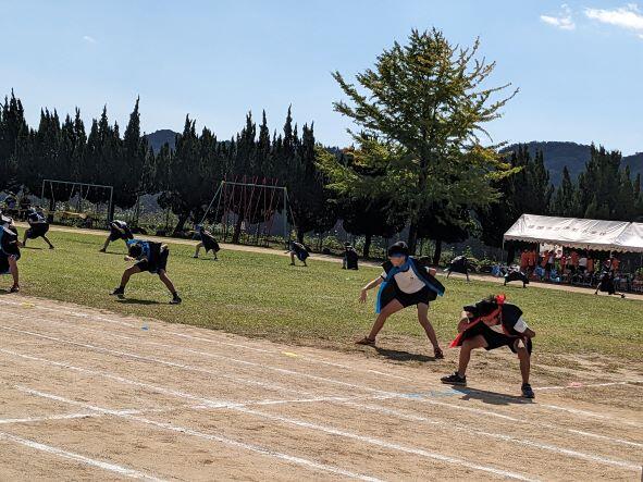 表現や徒競走、団技、リレー、新一年生のかけっこもあり、熱戦が繰り広げられ、競技の部が白団、応援の部が赤団の優勝という結果になりました。本当に子どもたちは一生懸命に取り組み、素晴らしい運動会になりました。この団結をさらに持続し、さらに素晴らしい伊形小になるようがんばっていきましょう。