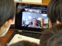 日本語を学習しているサンドレイク小学校(アメリカ合衆国アラスカ州)の6年生と英語を学習している本校の6年生が互いに質問し合う活動でした。