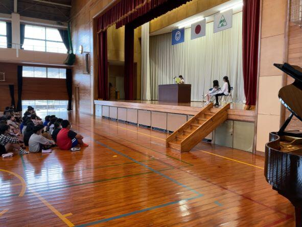 3年生の「すずか」さんは2年生を振り返り、二重跳びや算数を頑張ってできたことで、頑張ればできるということに気づいたことや、跳び箱や理科の勉強、そして地域の人への挨拶を頑張って、地域を明るくしたいという話をしてくれました。