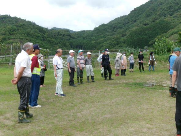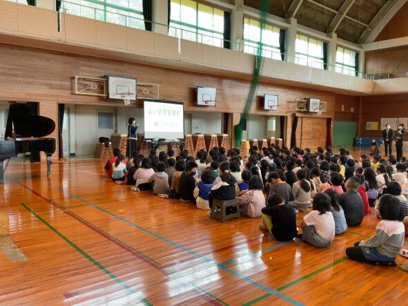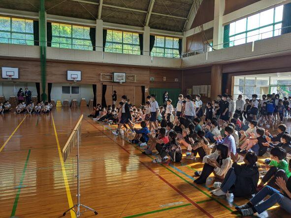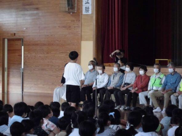 学校の様々なことに協力をしていただく方々をお招きし、体育館で対面式を行いました。普段から登下校の交通安全の見守りや稲作・芋作りのお手伝い、読み聞かせなど、様々な学校の教育活動にご支援をいただいている地域の皆さんから、自己紹介をしていただき、代表で学校運営協議会の稲吉さんから挨拶をいただきました。児童からも6年生が代表であいさつをしました。とても立派なあいさつでした。