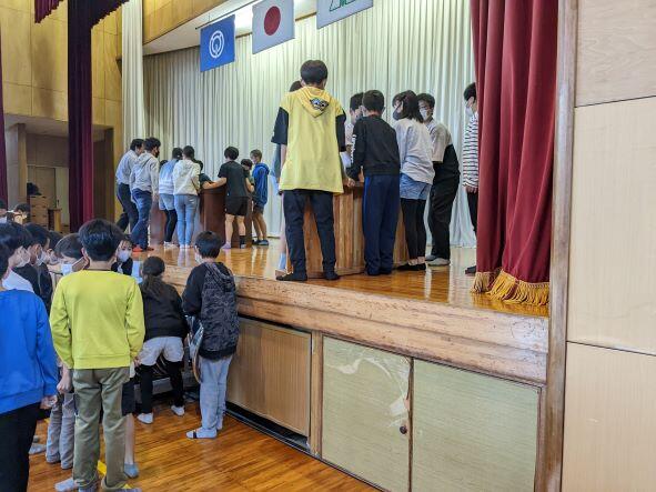 集会では、代表児童が、お越しいただいたボランティアの皆様お一人お一人に感謝状を手渡しました。