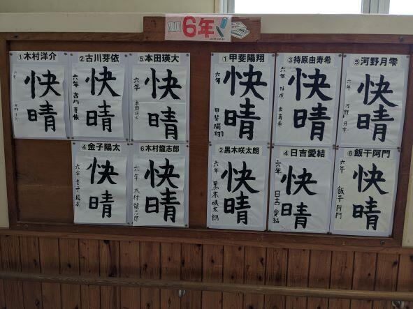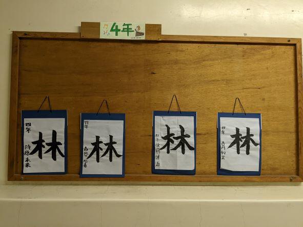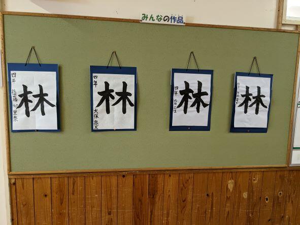 学年の掲示板には習字の作品が展示されていました。みんな力作ばかりです。頑張ってよく書けてます。