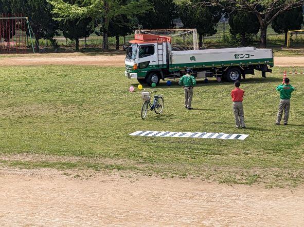 今日は低・中・高学年に分かれて交通安全教室が行われました。センコーさんの協力をいただき、運動場には大きなトラックが用意され、迫力のある交通安全教室が行われました。自動車がスピードを出しているとなかなか止まれないことやトラックが交差点を左折するときに内輪差が生まれ、後輪に巻き込まれるということを、実際に子どもたちが目で見ることができ、とてもよい交通安全教室となりました。今日学んだことをしっかりといかして、交通事故に遭わないように気をつけていってほしいと思います。センコーの職員の皆様、ご指導ありがとうございました。