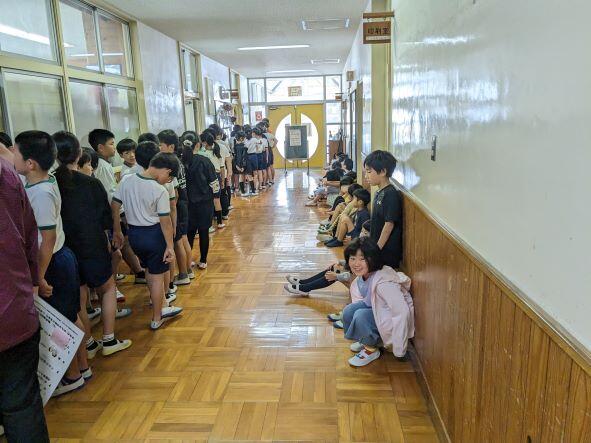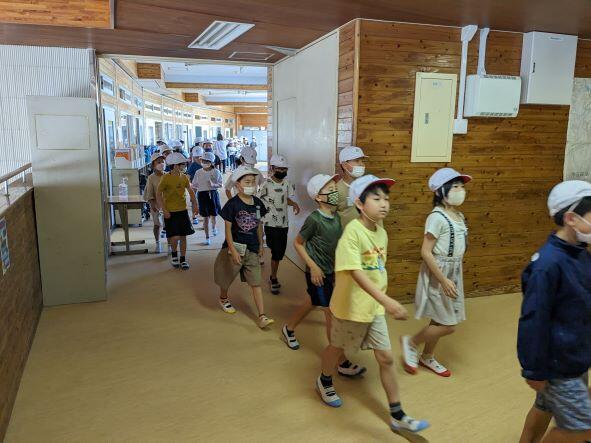 朝の時間に避難訓練(地震・津波)が行われました。教頭先生からの地震発生のアナウンスが流れ、子どもたちは机の下に入り込みました。しばらくして津波のアナウンスが入り、児童全員が3階の廊下まで避難しました。伊形小学校の場合、高台に立地しているため、学校にいれば津波を心配することはないですが、登下校中に地震に遭遇したときはとても心配です。ご家庭でも万一の時に備え、どこに避難するのかをしっかりと決めておいてほしいと思います。