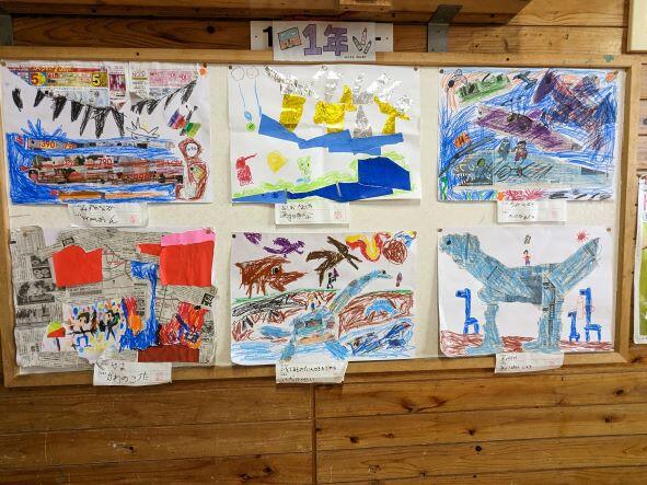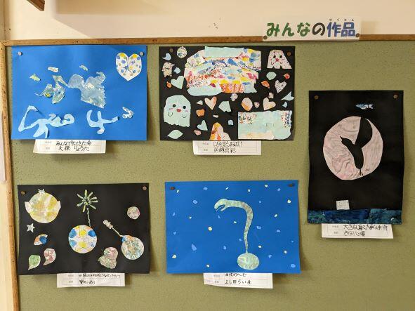 職員室前の廊下には子どもたちの素晴らしい作品が掲示されています。